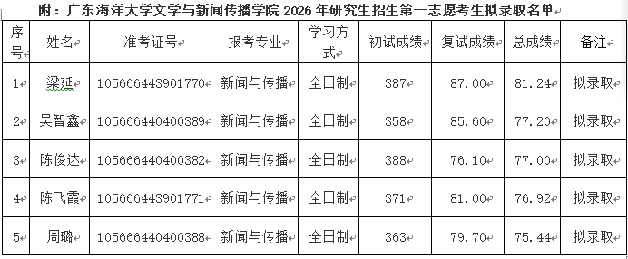 根据公司及公司研究生招生工作的相关文件精神和要求,经公司研究生招生录取工作领导小组审定,将公司2026年硕士研究生第一志愿考生拟录取名单进行公示。