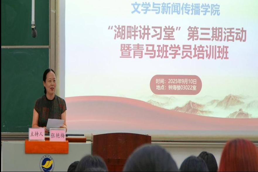 9月10日下午,球盟会在钟海楼03022教室开展“湖畔讲习堂”第三期活动暨青马班学员培训班理论课,会议由公司党委书记张艳梅主持,第八届青马班全体学员、各党支部员工党员及入党积极分子代表共计160人参加会议。