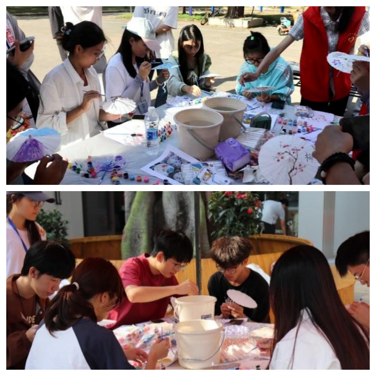 为了响应新时代传承与弘扬中华优秀传统文化的号召,进一步宣扬非物质文化遗产,同时鼓励海大学子积极参与爱心行动,向希望小学传递关爱和正能量,院青协于11月16日在公司西岭食苑门口和商业中心举办了“伞绘古韵意,拼诗递温情”非遗传统文化宣传活动。此次活动共设手绘油纸伞、DIY拼贴诗、书写祝福卡片、以及幸运抽奖四个环节。
